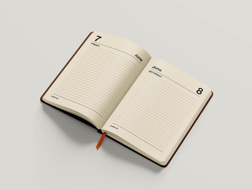 Com visual sofisticado e acabamento impecável, o Mockup de Cadernos de Couro Grátis apresenta um conjunto de seis arquivos PSD que simulam com realismo cadernos de capa dura e textura de couro grosso. Cada detalhe, como o fecho elástico e o marcador de fita, reforça o aspecto premium, ideal para apresentar agendas, diários e artigos de papelaria corporativos.