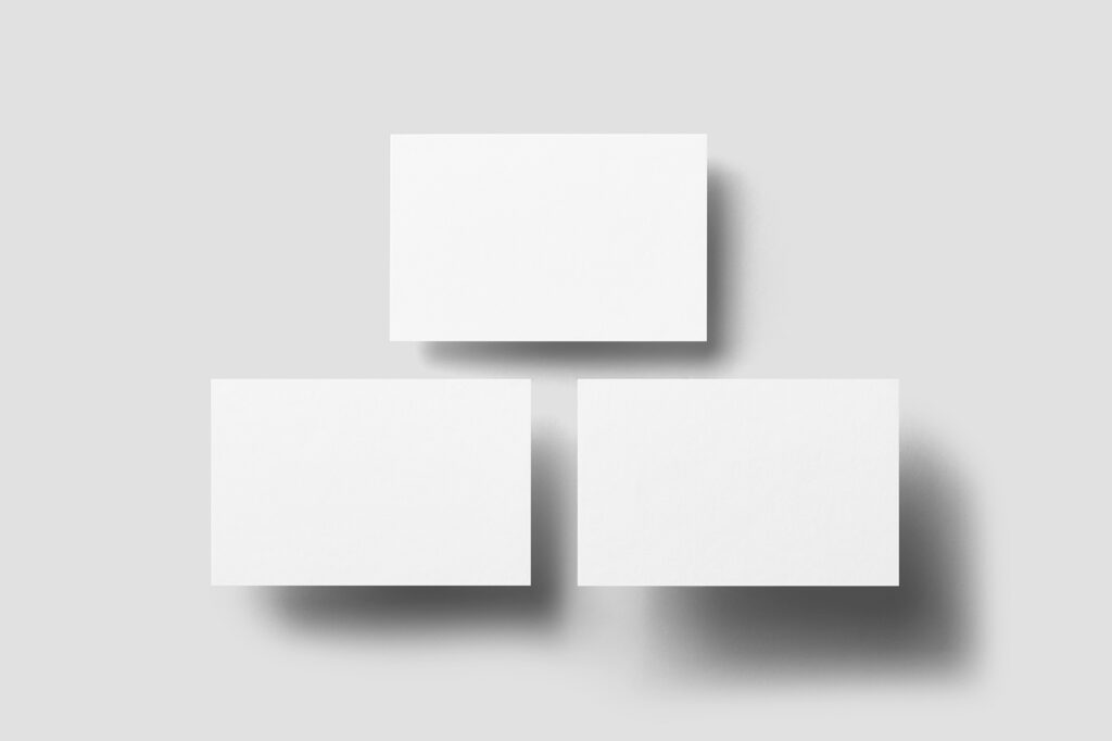 Com design elegante e visual moderno, o Mockup de Cartão de Visita Triplo Grátis apresenta três layouts horizontais com estilo minimalista sobre um fundo bege suave, criando uma cena sofisticada e equilibrada. É a escolha ideal para mostrar frente e verso de um cartão de visita em uma única composição profissional.