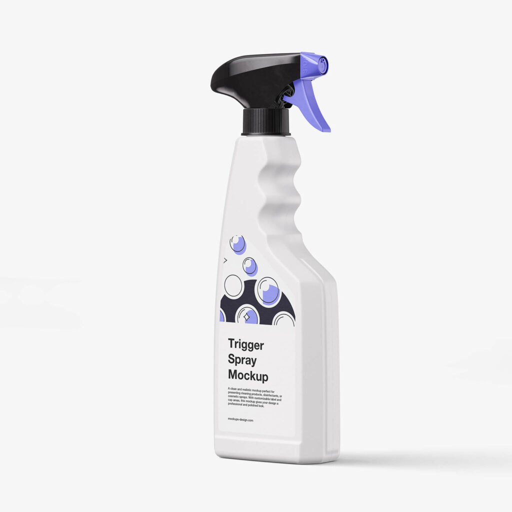 Realista e versátil, o Mockup de Frasco de Spray com Gatilho Grátis em PSD destaca rótulos e embalagens com perspectivas profissionais.