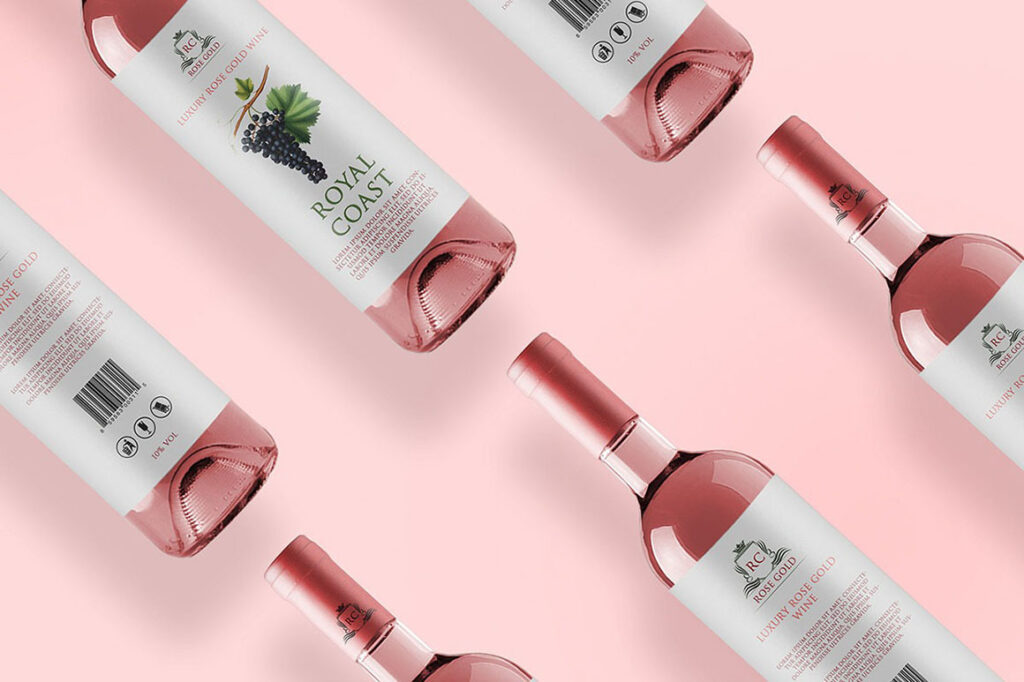 Com visual refinado e atmosfera elegante, o Mockup de Garrafas de Vinho Rosé Grátis apresenta quatro cenas realistas que valorizam rótulos e identidades visuais no segmento de bebidas. A composição destaca o brilho do vidro e os tons suaves do rosé, criando uma prévia sofisticada e envolvente.