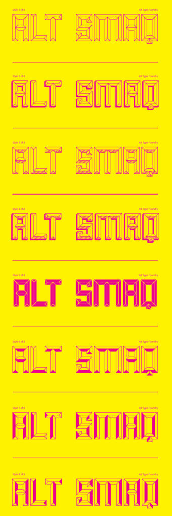 Com visual ousado e personalidade marcante, a fonte SMAQ é uma tipografia decorativa criada por Andreas Leonidou, perfeita para pôsteres, logotipos e composições criativas que precisam de impacto visual. Suas formas exclusivas e geométricas dão força e estilo aos textos, tornando cada palavra um elemento de design.